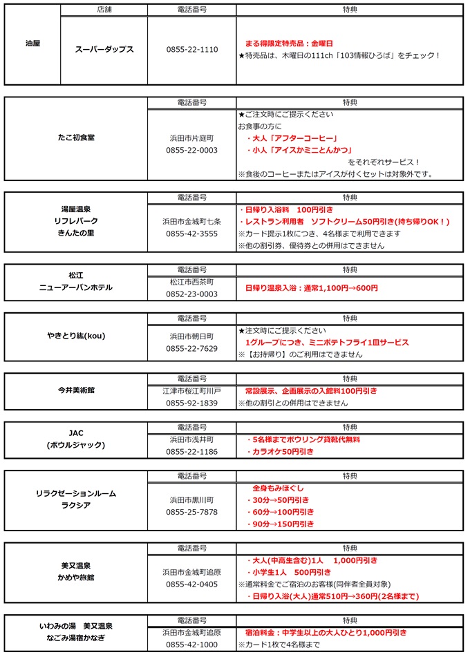 - 「石見ケーブルビジョンメンバーズ」加盟店でご利用になれます。